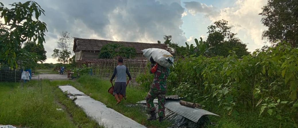 Babinsa Koramil 1014-05/P.Banteng Serda Edy Kurniawan Kodim 1014/Pangkalan Bun melaksanakan peninjauan Tanaman Terong yang akan di panen milik Bapak Iim anggota Pok Tani Desa Mulya Jadi Kecamatan Pangkalan Banteng, Kabupaten Kotawaringin Barat.