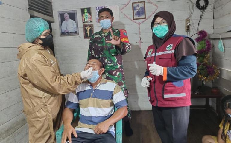 Babinsa Kuala Bahe Dampingi Petugas Swap Tes Lacak Covid-19 Ke Rumah Warga