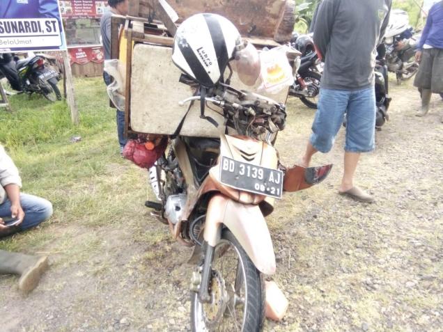 Seluma, ewarta.co - Meli (40) warga Kelurahan Pasar Tais sekaligus Aparatur Sipil Negara (ASN) Pemkab Seluma, Kabid Perlindungan Anak (PA) Dinas Pemberdayaan Perempuan dan Perlindungan Anak Pengendalian Penduduk dan Keluarga Berencana (DP3AP2KB) Seluma, Sabtu petang (6/4) menabrak pedagang ikan keliling di Tugu Bujang Gadis Simpang 6 Seluma. Kejadian bermula saat Meli sedang mengemudikan Toyota Avanza warna hitam nopol BD 1088 PY dari arah Kota Bengkulu hendak menuju perkantoran Pemda Seluma, namun saat memutar serta kurang memperhatikan kendaraan yang berada didepannya tiba menabrak sepeda motor jenis Yamaha Jupiter Z nopol BD 3139 AJ dikendarai oleh AG (35) warga Kelurahan Pagar Dewa Kota Bengkulu (AG) penjual ikan keliling. Tabrakan pun tak dapat dihindari lagi, hingga AG terjatuh ke aspal bersama motor dan juga bakul sebagai wadah ikan. Akibat kejadian tersebut langsung membuat warga serta pengendara lain berhamburan keluar guna membatu kedua pengendara yang terlibat kecelakaan tersebut, serta membawa pengendara motor ke tepian jalan guna mendapatkan pertolongan. "Saya tadi tidak tahu pak kalau ada motor didepan, walaupun saya sudah berusaha mengerem, namun tetap saja nabrak," kata Meli, Sabtu (6/4/2019). Disamping itu, Pendi (24) merupakan saksi yang saat itu sedang berada di warung tidak jauh dari TKP mengatakan, bahwa motor itu tiba-tiba ditabrak oleh mobnas. "Aku tadi lagi di warung wifian pak, ngopi sepulang kerja dengan rekan-rekan saya pak. Nahh tiba-tiba mobnas itu nabrak motor pak, mungkin saja pengemudi mobnas kurang hati-hati pak", terang Pendi. Disamping itu pula akibat kecelakaan tersebut kedua pengendara sepakat memilih jalan damai, serta Meli memilih bertanggung jawab baik pengobatan Ag serta kerusakan motor Ag. Akibat kejadian tersebut, kedua kendaraan mengalami penyok bagian depan, sedangkan Ag mengalami memar dan lecet-lecet.