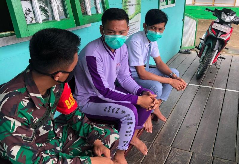 BARITO UTARA - Dalam pelaksanaan program TNI Manunggal Membangun Desa Ke-111 Kodim 1013/Mtw, di sela-sela pekerjaan di sasaran fisik Desa Karamuan Kecamatan Lahei Barat Kabupaten Barito Utara, tetap melaksanakan komunikasi sosial (Komsos) antara satgas TMMD bersama masyarakat, Pada hari Kamis (10/06/21)