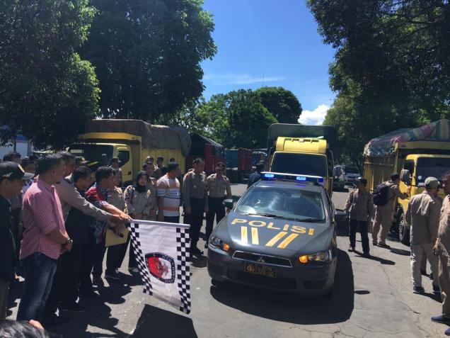 Secara simbolis pelepasan logistik dilakukan langsung oleh Wakapolres Rejang Lebong Kompol Hardinata, SIK didampingi Ketua KPU Restu Satrio Wibowo serta para Komisioner lainnya.
